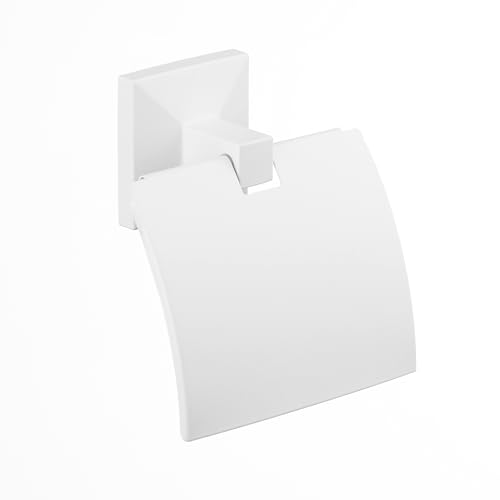 TATAY Toilet Roll Holder Wall Mounted or Stick On | No Drill or With Screws | Glue&Fix Kit (Supports 10kg) | Stainless Steel | Bathroom Accessory | 12x4.5x12 cm - Iconik - White