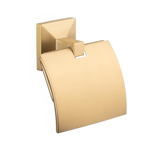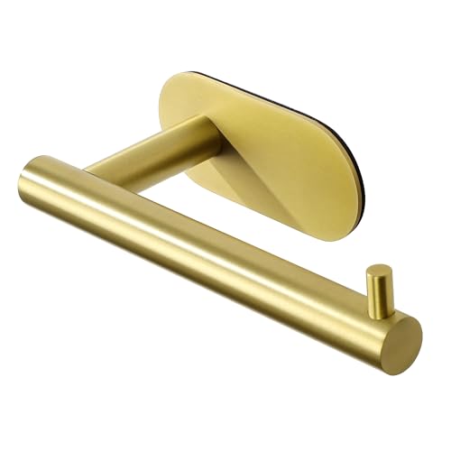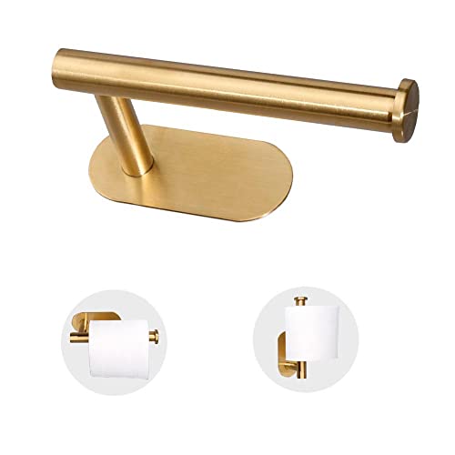 Bathroom Toilet Paper Holder,Ahesive Toilet Paper Holder Rustproof SUS304 Stainless Steel Bathroom Paper Roll Holder no Drilling Stick on Tissue Holder Wall Mounted (1Pack,Brushed Gold)