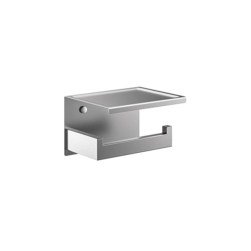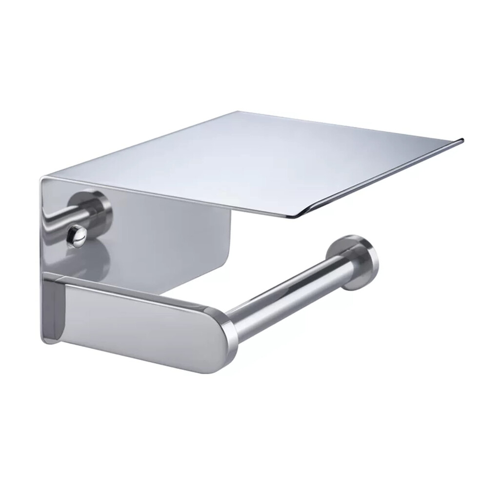 Brushed Nickel Toilet Roll Holder with Phone Shelf, Stick on Silver Toilet Paper