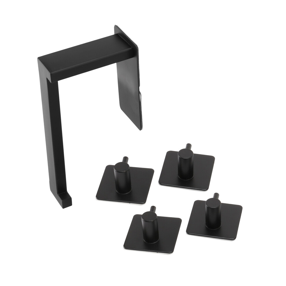 TATAY Toilet Roll Holder Wall Mounted or Stick On | No Drill or With Screws | Glue&Fix Kit (Supports 10kg) | Stainless Steel | Open Design | 12x4.5x12 cm - Iconik - Black