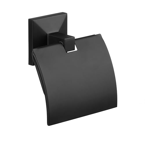 EMPAVA Self Adhesive Toilet Paper Holder - SUS304 Stainless Steel Rustproof No Drilling Paper Roll Holder stick on wall for Bathroom, Kitchen, Washroom, Black