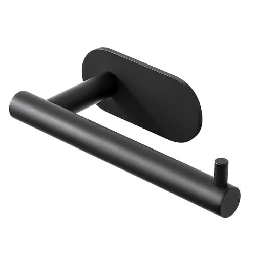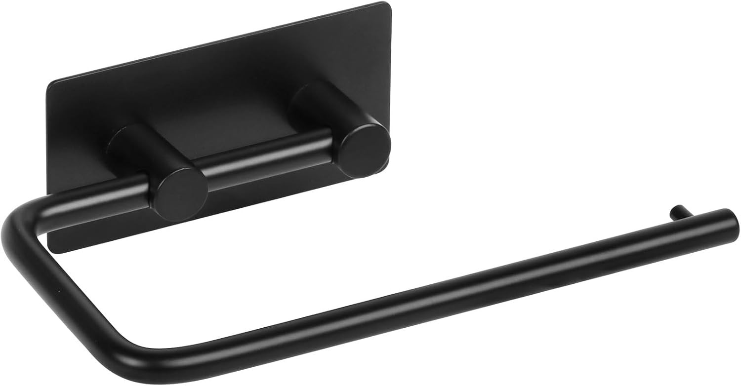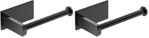 HITSLAM Matte Black Toilet Roll Holder Self Adhesive 304 Stainless Steel Stick on Toilet Paper Holder for Bathroom