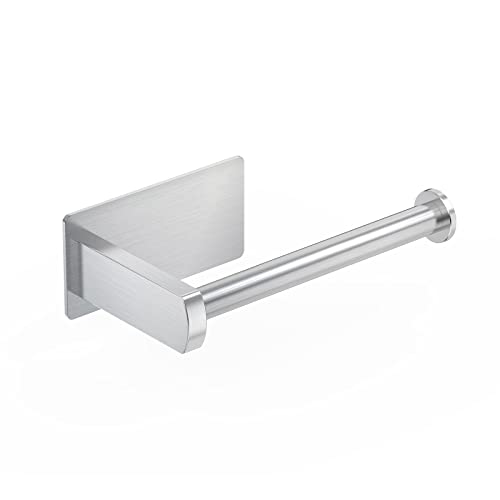 Bathroom Toilet Paper Holder Self-Adhesive Roll Holder Wall Mount SUS304 Stainless Steel no Drilling Tissues Holder Stick on Wall Silver Grey (1Pack,Brushed Nickel)