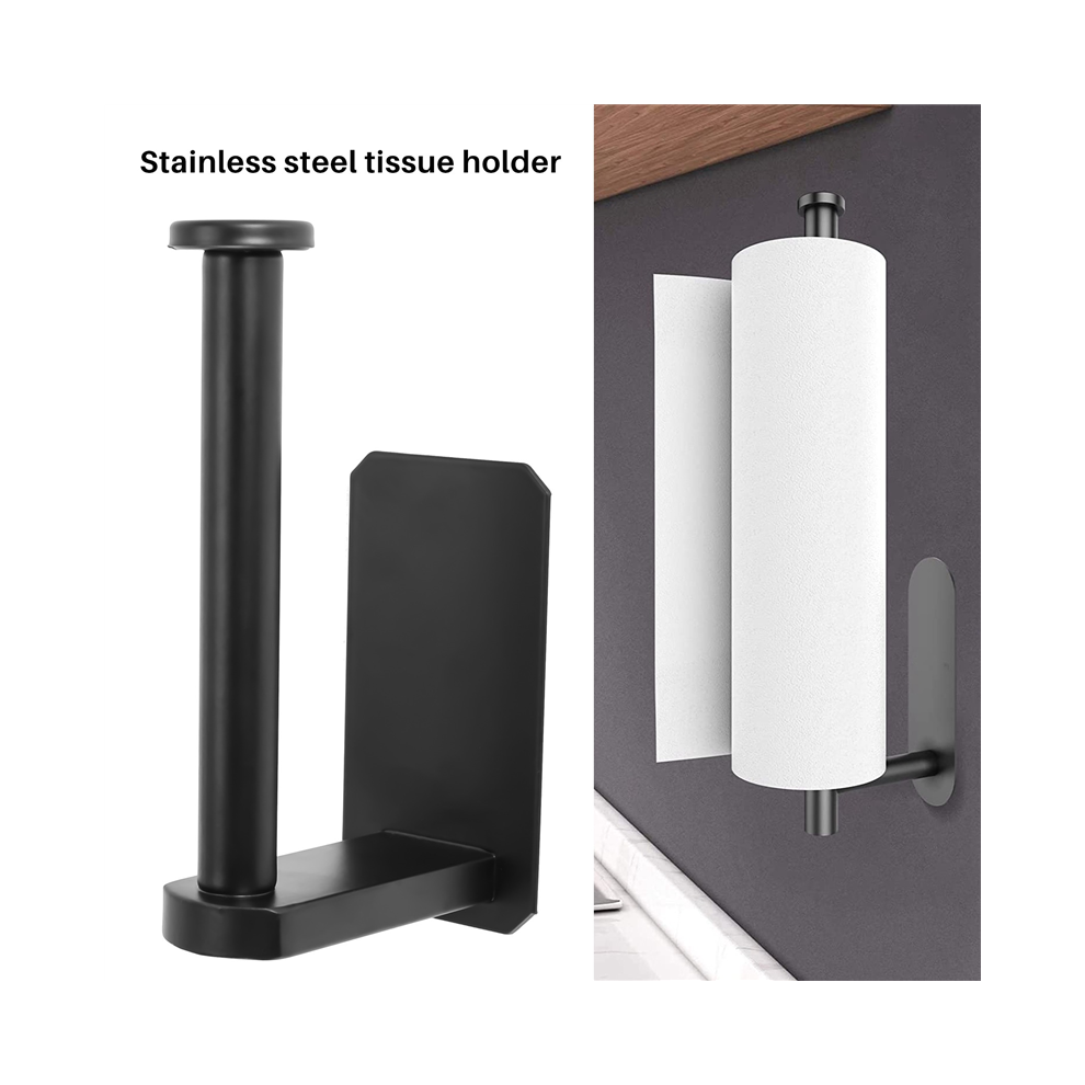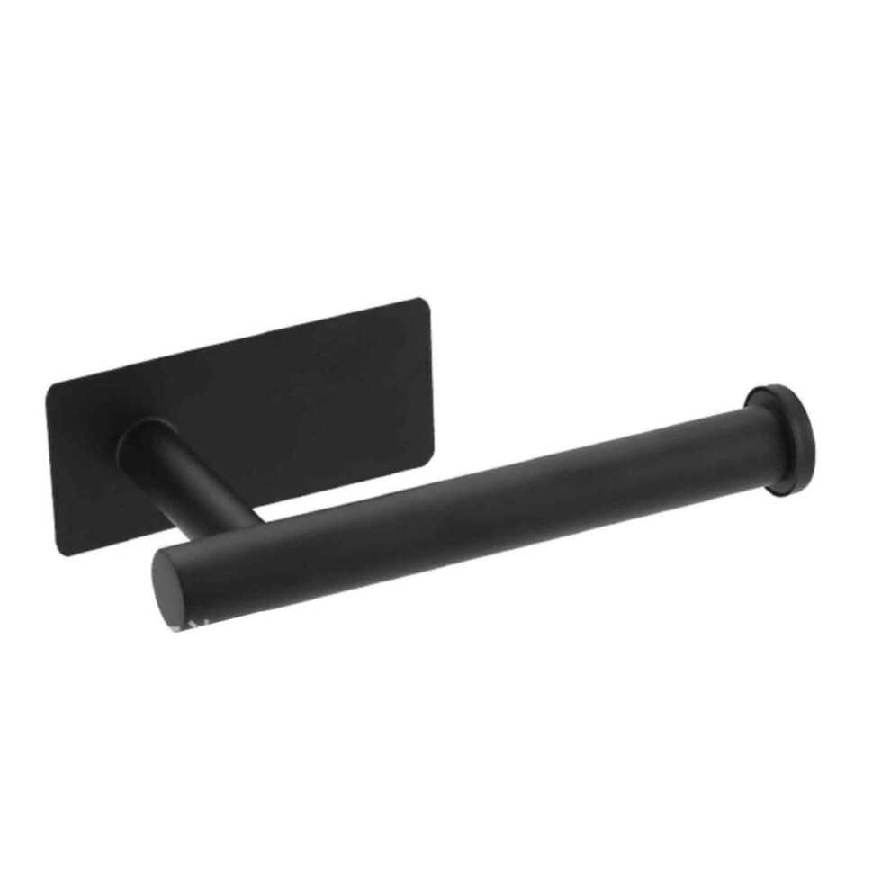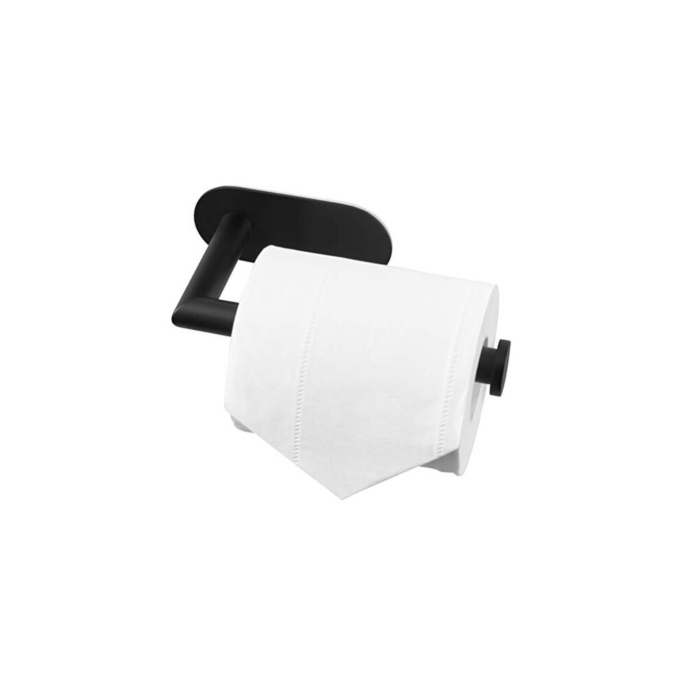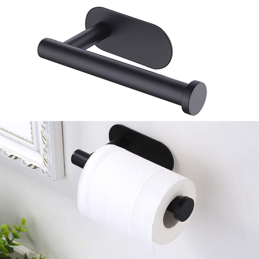 Toilet Paper Holder Self Adhesive Kitchen Washroom Roll No Drilling for Bathroom Stick on Wall Stainless Steel Brushed - Black