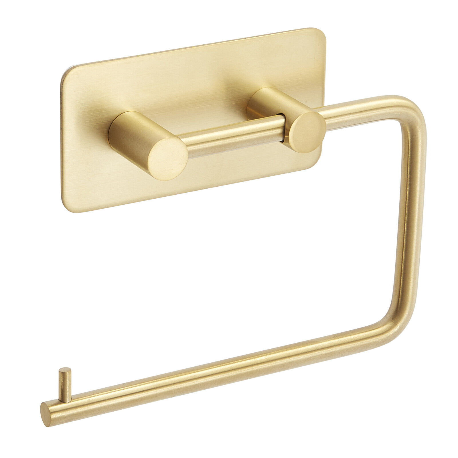 Satin Brass Stick on Toilet Roll Holder - 3M Self Adhesive Backing