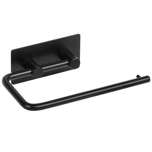 SAYAYO Black Toilet Roll Holder Self Adhesive, Stick on Toilet Paper Holder for Bathroom Kitchen, SUS304 Stainless Steel Waterproof, No Drilling