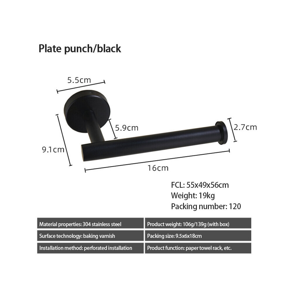 (Black) Chrome Wall Mounted Toilet Roll Holder Stainless Steel Paper Stand Stick on Wall