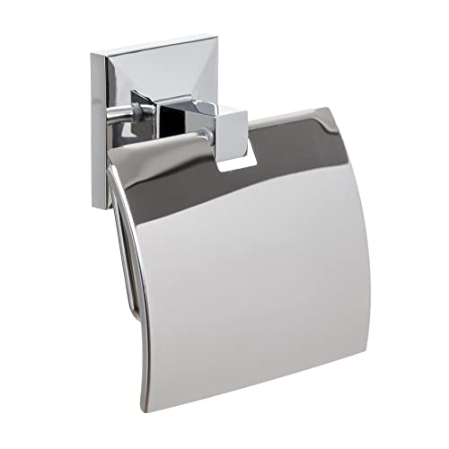 Designfactory Hamburg Toilet roll holder | Self adhesive toilet paper holder | No drill Toilet roll holder wall mounted | Easy stick on | Modern design | Brushed silver