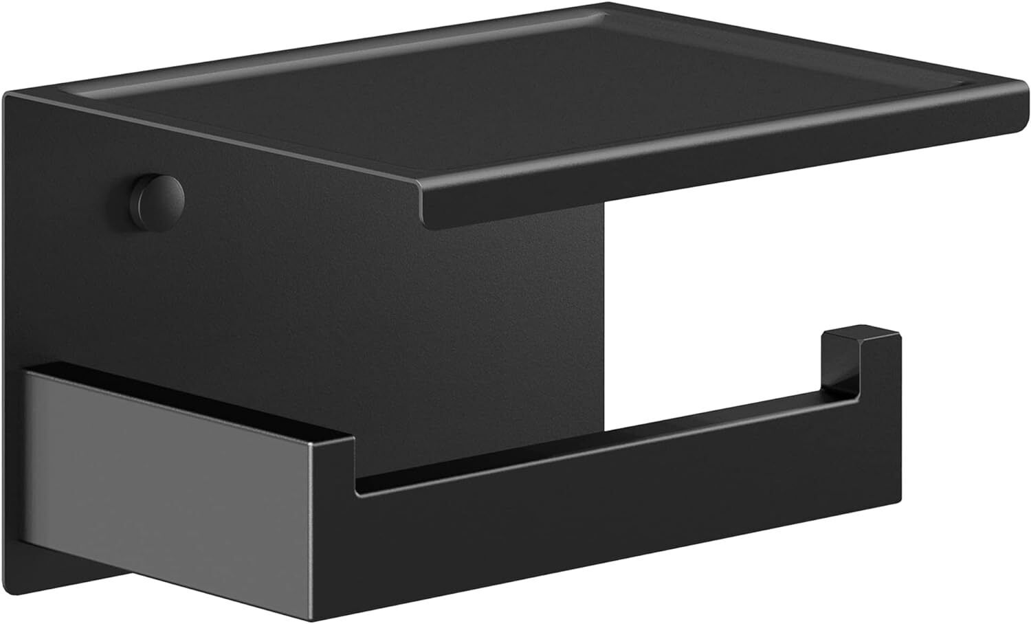HITSLAM Matte Black Toilet Roll Holder with Phone Shelf, Stick on
