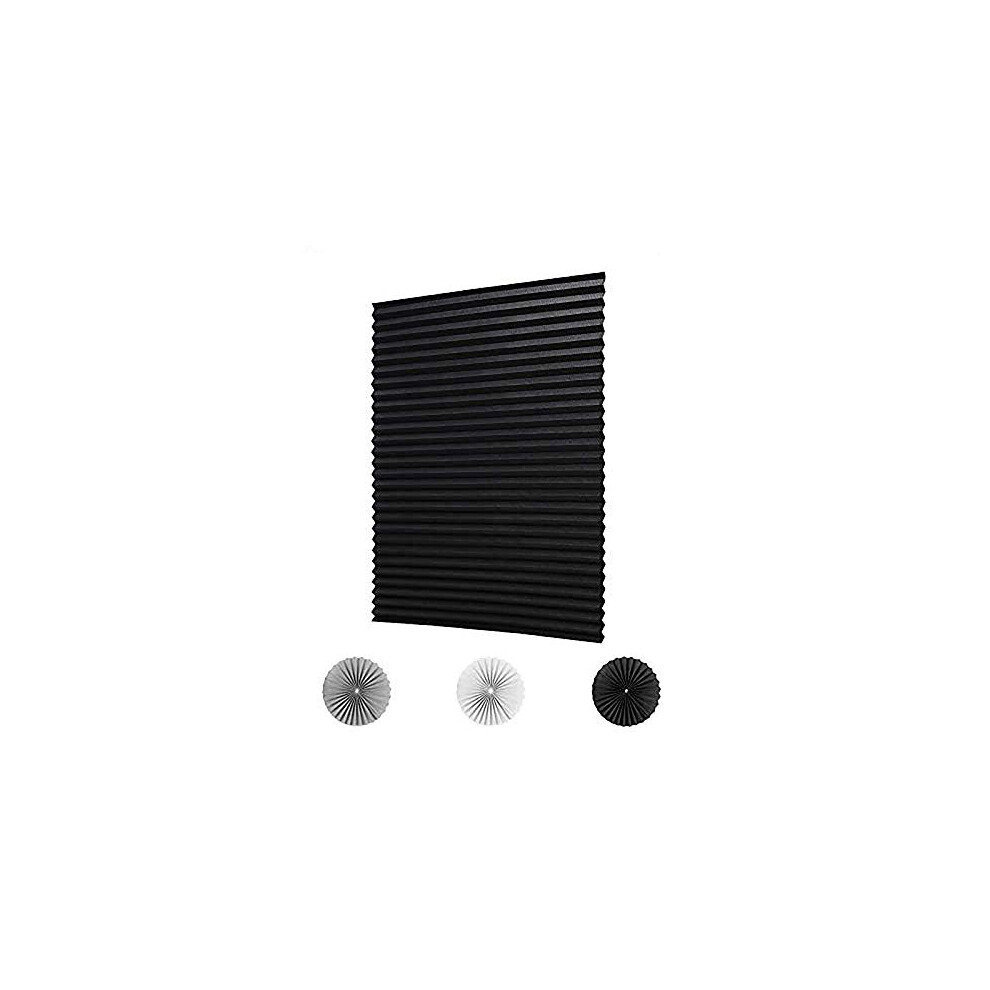 Blackout Window Shades Cordless Paper Pleated No Drill Stick On Blinds for Indoor Privacy 35x71in Black