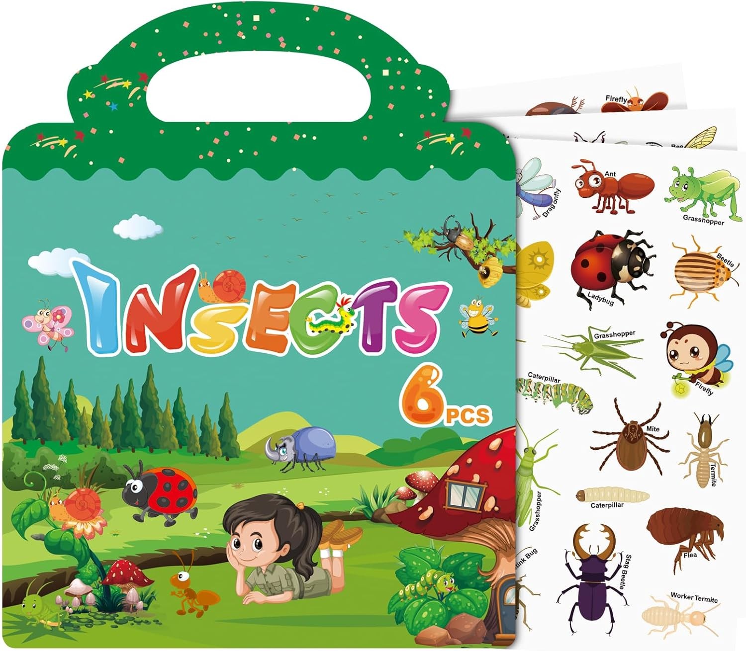 211 PCS Insects Reusable Sticker Books for Kids 2-4, 6 Sheets Reusable Stickers