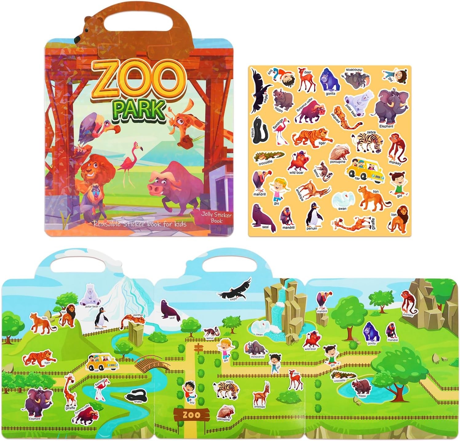 DIYASY Sticker Books for Kids, Reusable Sticker Books Jelly Quiet Book Preschool Learning Activities Busy Book for Toddler 3 4 5 6 Year Birthday Gift Educational Learning Toy (Zoo)