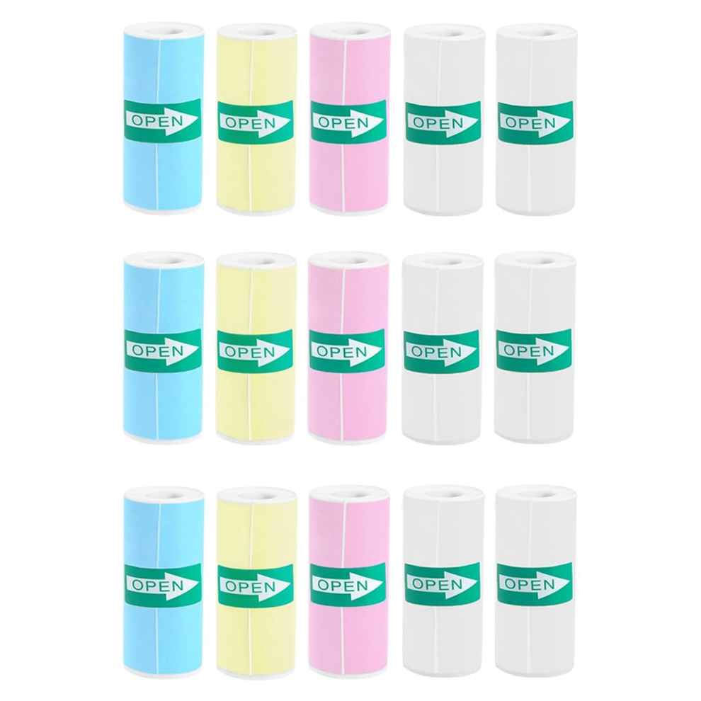15 Rolls Thermal Sticker Paper for Mini Printer Maker, 9 Colored and 6 White