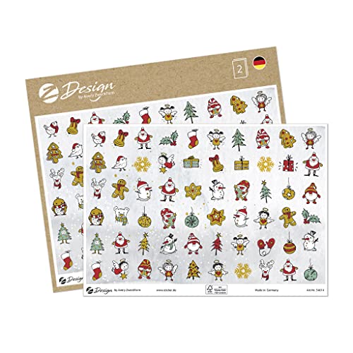 AVERY Zweckform 120 Christmas Stars Santa Gingerbread Stickers (Made in Germany, Christmas Stickers on A5 Sheet with Gold Embossing, Paper Self-Adhesive, Christmas Decoration, Stars Gold) 54614