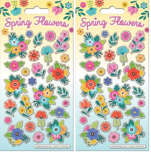Paper Projects Spring Flowers Sparkly Reusable Craft Stickers Perfect for Craft Activities for Children and Adults Reusable on Non-Porous Surfaces, 19.5cm x 9.5cm, Multicolor (Pack of 2)