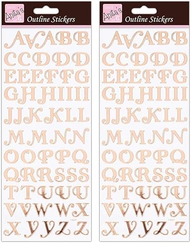 Anitas Outline Stickers, Script Alpha Upper Case, Rose Gold On White, for Scrapbooking, Card Making, Kids Play, Homework, Art, Craft, Embelish, Decorative, Paper, Card, Glass, Metal, Plastic, Foam