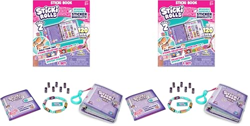 Sky Castle Sticki Rolls Sticki Book Series 2, Wearable & Shareable Sticker Bracelet, 120 Mini Stickers, Bracelet and Sticki Book, Assorted colours and styles (Pack of 2)
