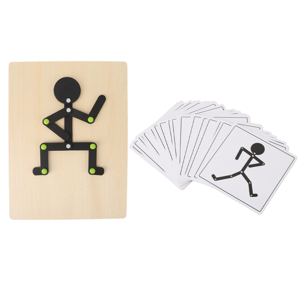 Wooden Stickman Toy Free Movement Limbs Educational Stick Man Puzzle Toy with 24 Cards
