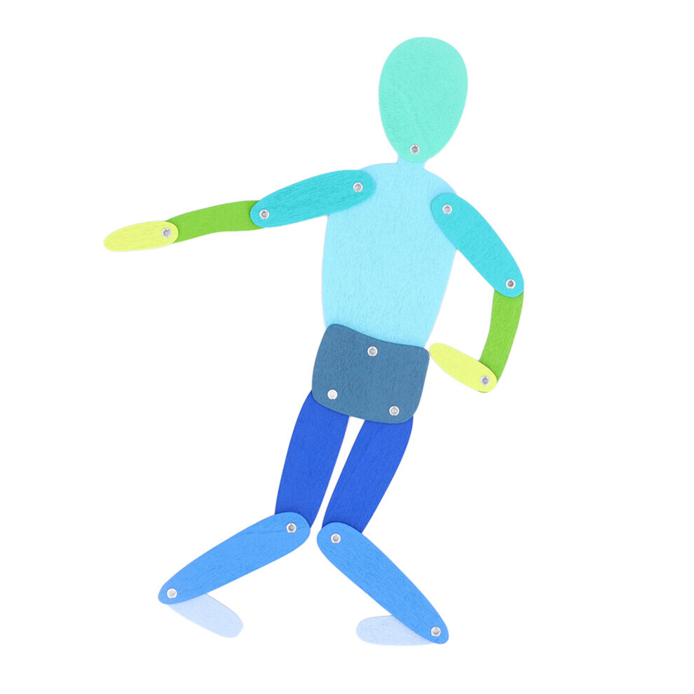 Interactive Blue Wooden Stickman Toy Game - Creative & Fun for Kids