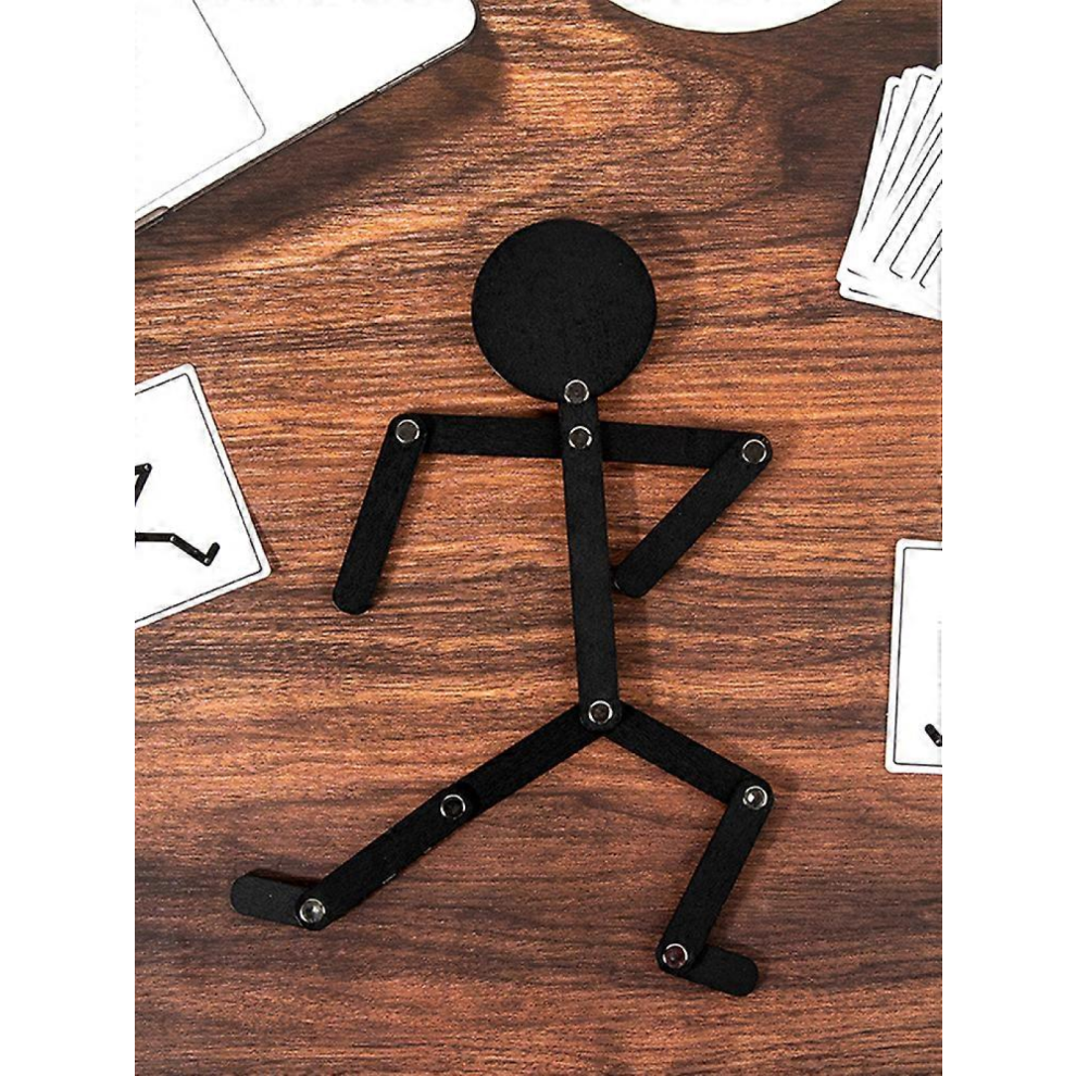 Black Stickman Wooden Stickman Toy With Moving Limbs 24 Cards Educational Wo HOT