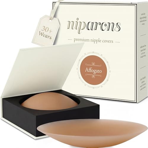 Niparons Premium Nipple Covers - Invisible Adhesive Sticky Bra Pasty Nip Covers - Reusable Silicone Stick On Bra Pasties (Affogato, 8cm)