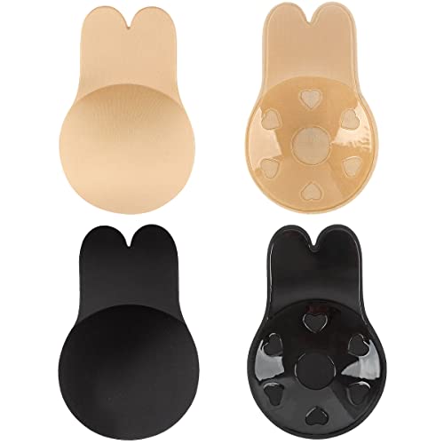M MUNCASO 2 Pack Women Adhesive Bras,Rabbit Ears Invisible Nipple Covers Backless Sticky Bra Breast Lift Up Gel Lifting Breast Bra (A/B, Nude & Black)