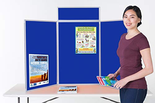 Wonderwall Foldaway Tabletop Exhibition 3 Panel Display Kit| Dual-Sided Royal Blue/Light Grey,|Portrait Style|Includes Bag, Header, Sticky Dots Starter Pack| for Schools, Healthcare, Events, Fairs