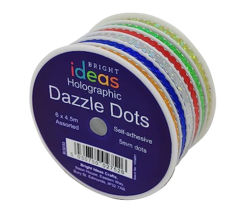 Bright Ideas Self-Adhesive Holographic Dazzle Dots, 6 Assorted Colours, 6 x 4.5m Strips, Sticky Coloured Dots Round Dot Labels (5mm) 27meters per Spool. BI3030.