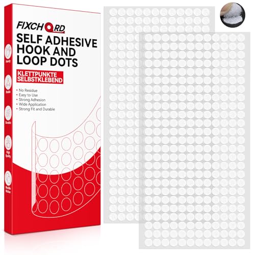 FIXCHORD 600Pcs Self Adhesive Dots, 10mm Sticky Hook and Loop Dots, Double Sided Sticky Dots, Sticky Back Coins, Double Sided Hook Loop Dots Backing Fastening Tape for Home, School, Office, DIY Crafts