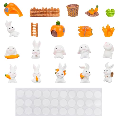 QZDAFFIC 20Pcs Bunny Cake Topper Rabbit Mini Figures with 30 Sticky Dots Christmas Easter Birthday Party Micro Garden Landscape
