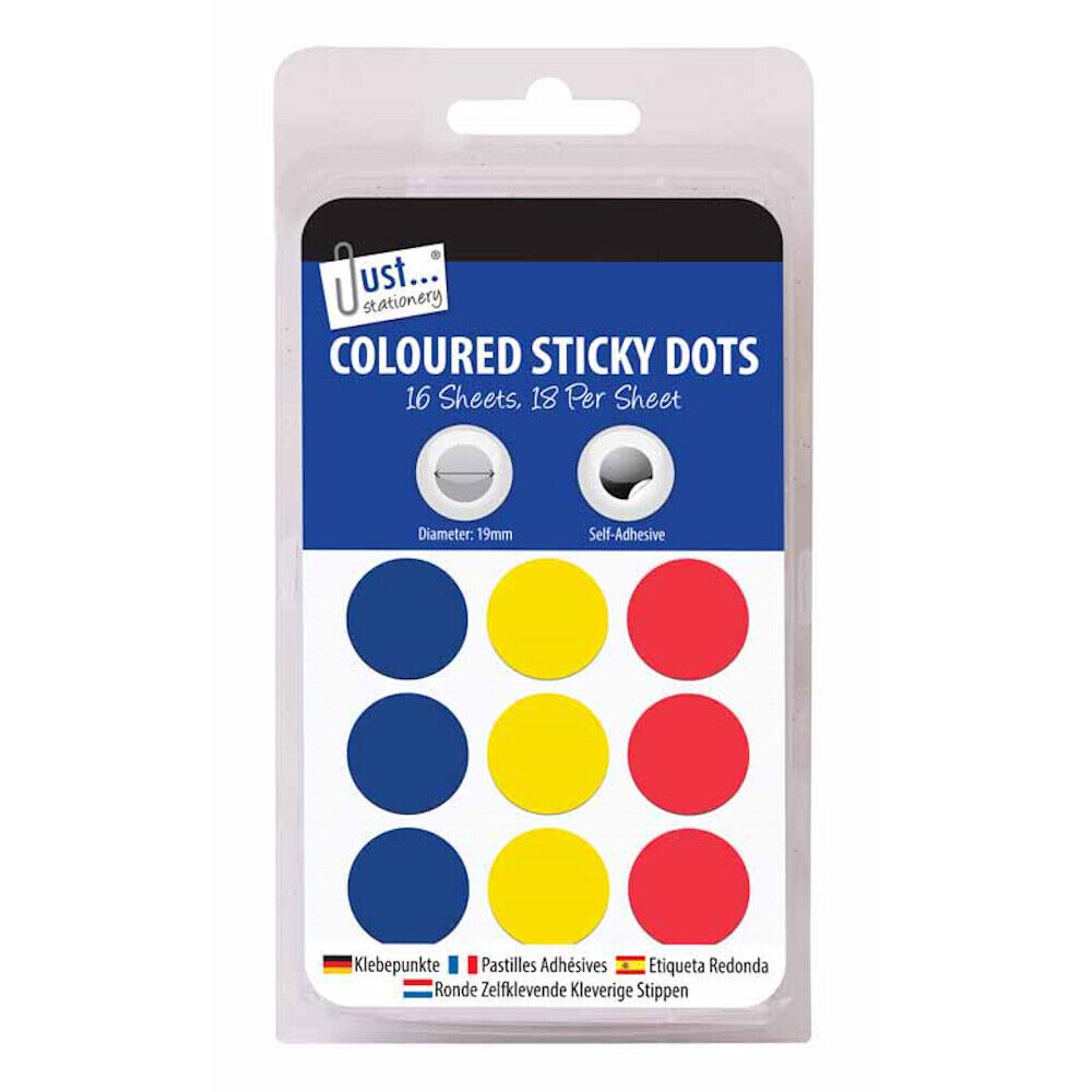 Sticky Dots - Assorted Colours 16 Sheets Self Sticking Adhesive 19mm