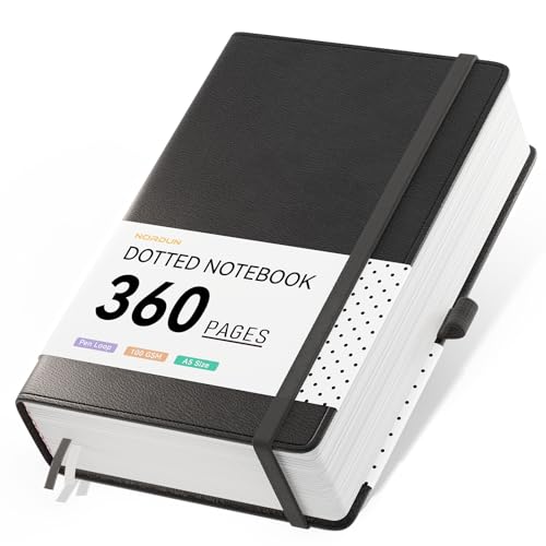 NORDUN Dotted Notebook A5 Thick Journal,360 Pages black Notebooks for Writing,100gsm Paper Hardcover Leather Journal for Women Men Office School Work,Sticky Tabs,14.5 x 21cm - BLACK