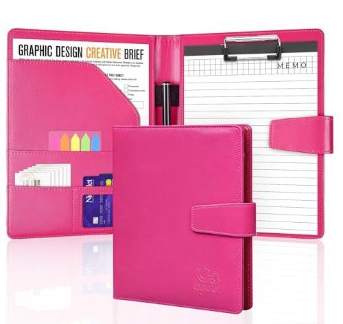 Agoer A5 Clipboard Folder,DIN A5 Leather Clipboard with Magnetic Closure,Conference Folder with Legal Pad Portfolio Folder A5 Clip Board with Storage Sticky Tabs Pen for Office Meetings,Rose Red