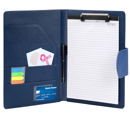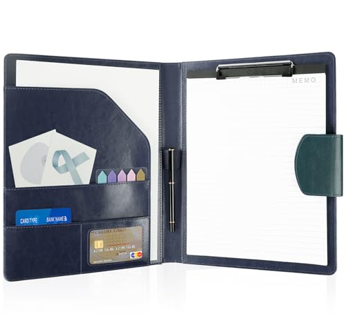 Agoer A4 Leather Portfolio,Multifunctional Clipboard Folder with Magnetic Closure Cover,A4 Padfolio Portfolio with Paper,Sticky Arrow Tabs,Pen for Business Organizer Interview,Meeting,Retro Blue