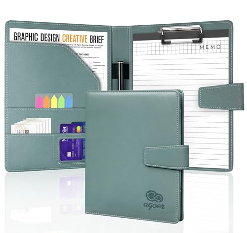 Agoer Clipboard Folder A4,Portfolio Folder A4 for Legal Pad with Magnetic Closure Cover,Faux Leather Folder with Paper,Sticky Arrow Tabs,Pen for Business Organizer Interview,Meeting,Pale Turquoise