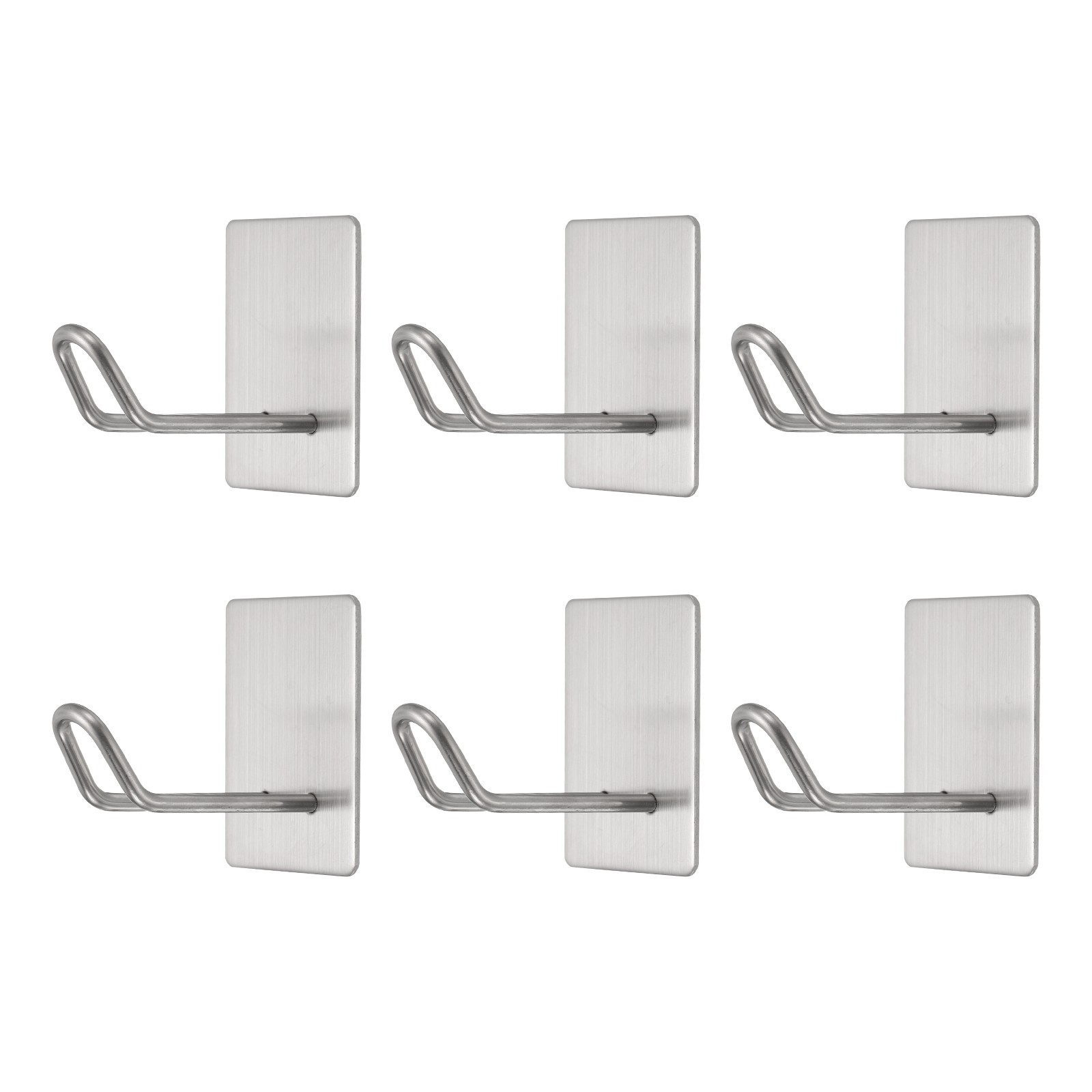 6 Packs Self Adhesive Hooks, Stainless Steel Heavy Duty Towel Wall Sticky Hooks