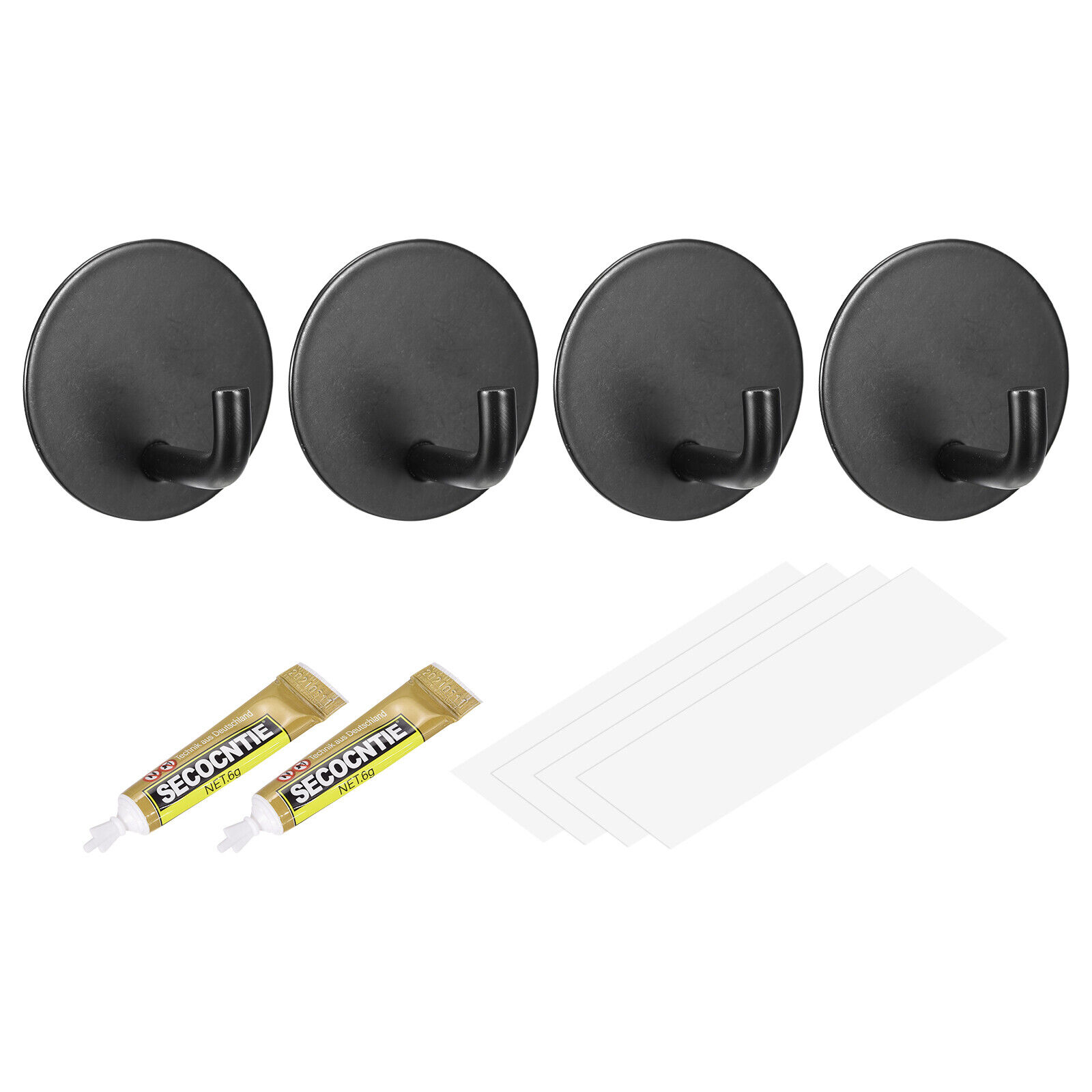 Self Adhesive Hooks, 4 Pack 304 Stainless Steel Sticky Hooks Wall Hangers, Black