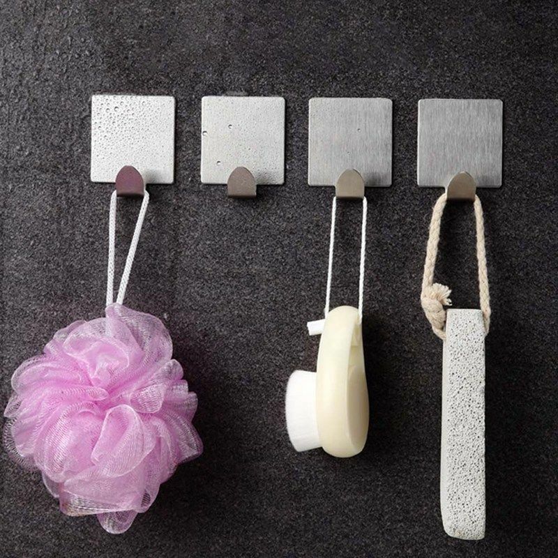 4pcs Self Adhesive Hooks Large Stainless Steel Towel Sticky Wall Hooks, Silver