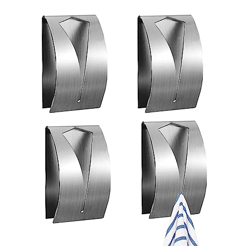 ANMEISH 4 Pcs Tea Towel Holders Self Adhesive,Grabber Stainless Steel Tea Towel Stick on Hooks,Sticky Wall Hooks for Hand Towel Holder Push and Grip,Kitchen Dish Towel Hanger for Bathroom (Silver)