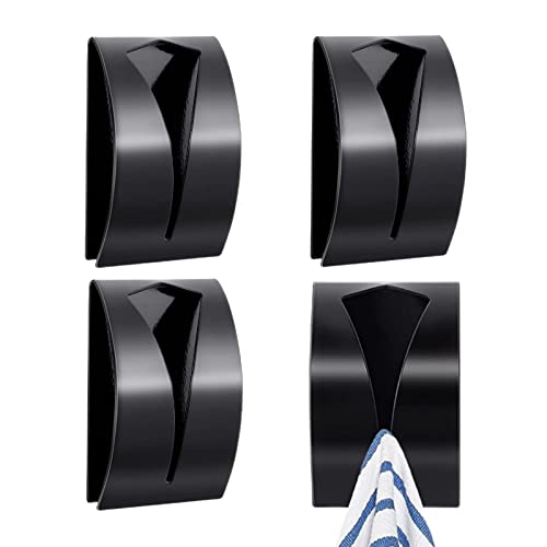 ANMEISH 4 Pcs Self Adhesive Towel Holder, Grabber Stainless Steel Tea Towel Stick on Hooks, Sticky Wall Hooks for Hand Towel Hooks, Kitchen Dish Towel Hanger for Bathroom Kitchen (Black)