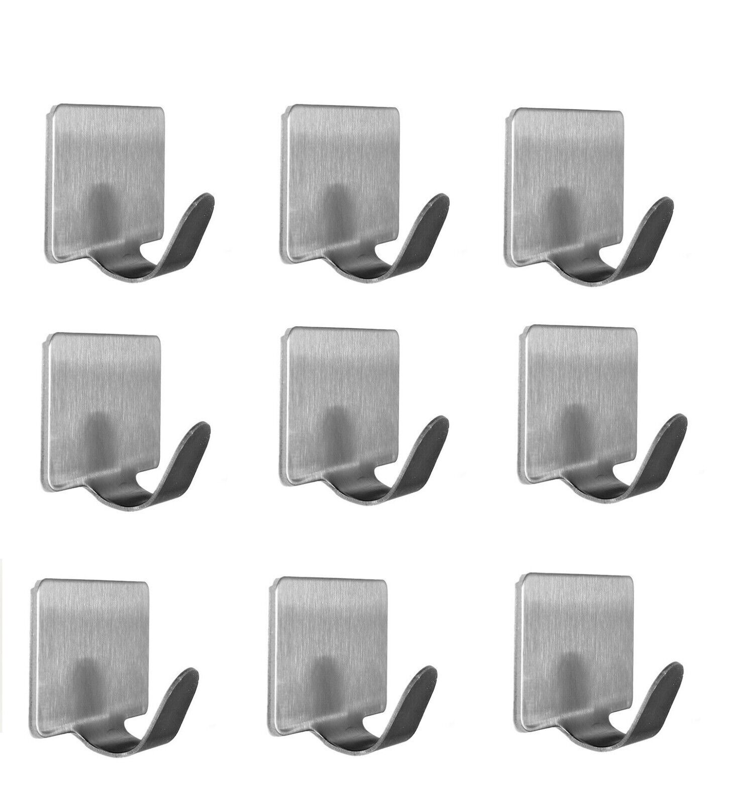 9 x Self Adhesive Wall Sticky Hooks Strong Stainless steel Door Hook Holder