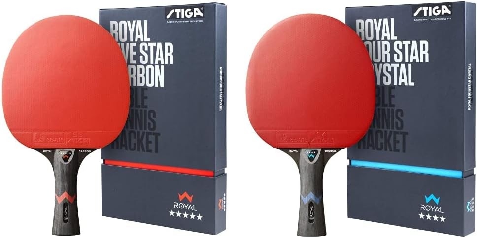 Stiga Royal 5-Star Table Tennis Pro Carbon Ping Pong Bat, Black/Red & Royal 4-Star Table Tennis Ping Pong Bat, Black/Red