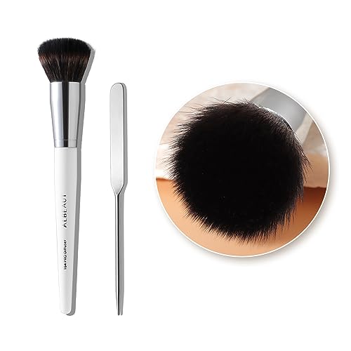 Stippling Kabuki Powder Bronzer Makeup Brush for Face Cheek, Duo Fiber Flat Top Brush