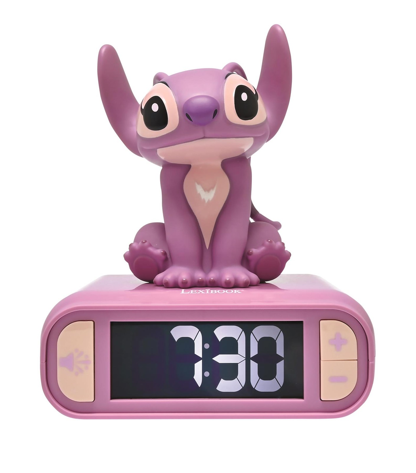 LEXIBOOK, Disney Stitch, Angel Night Light Alarm Clock, Sounds and Melodies, Backlit LCD Screen, Luminous, Snooze, Pink, RL800D1LXB