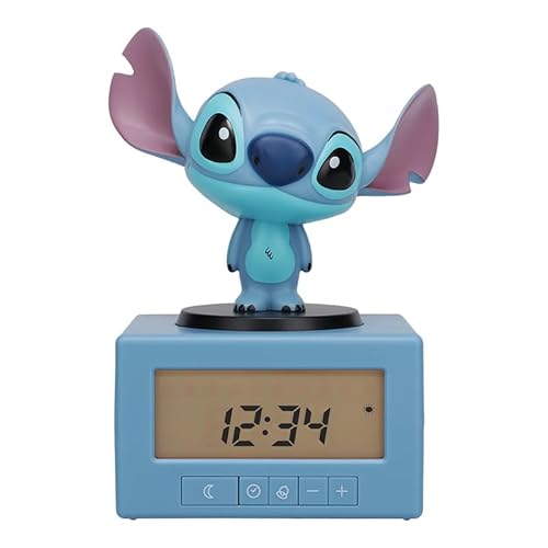 LEXIBOOK, Disney Stitch, Nightlight alarm clock, Sounds and Melodies, LCD Backlit screen, Luminous, Snooze, Blue, RL800DLXB