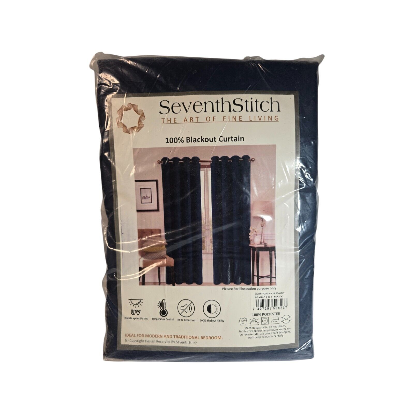 Seventh Stitch 100% Blackout Curtains in Black 66 x 54 Inch Navy