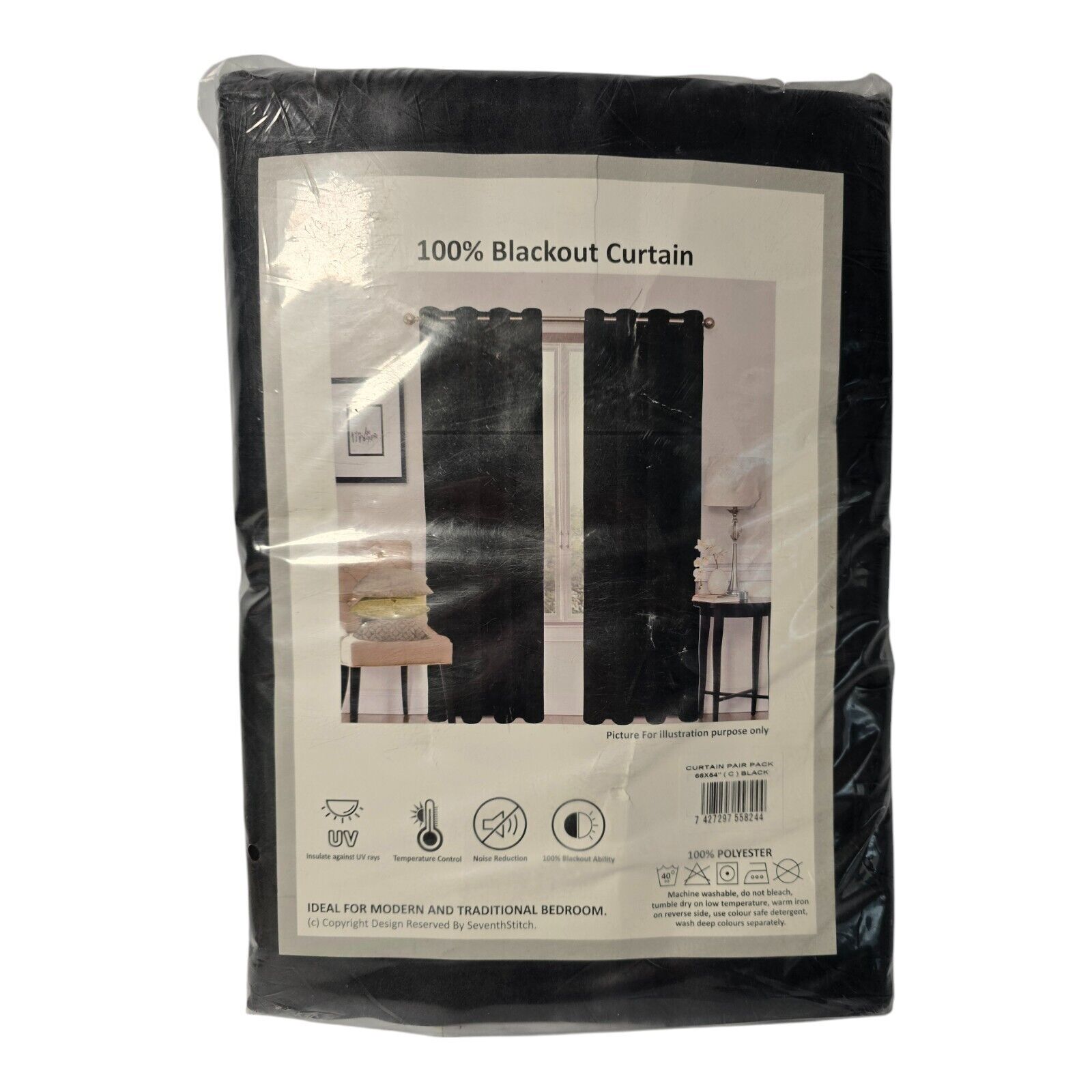 Seventh Stitch 100% Blackout Curtains in Black 66 x 54 Inch Black