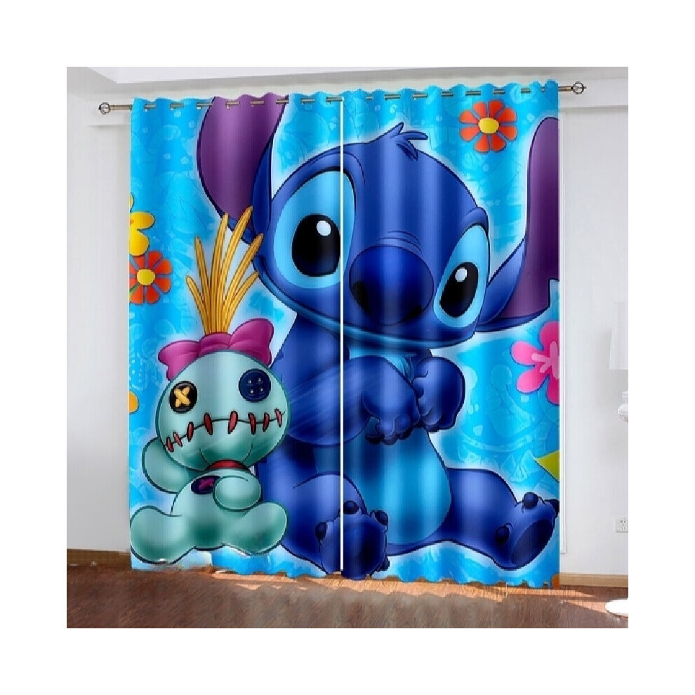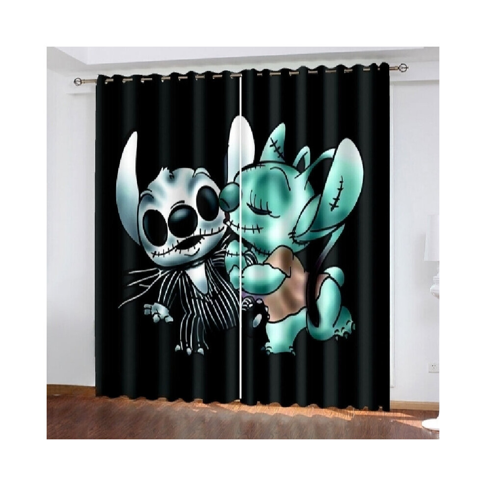 (Lazy, 52"(W)Ã63"(L)/132cm(W)Ã160cm(L)) Stitch 3d Lilo Cartoon Made Pair Thick Thermal Blackout Curtains Ring Eyelet Top