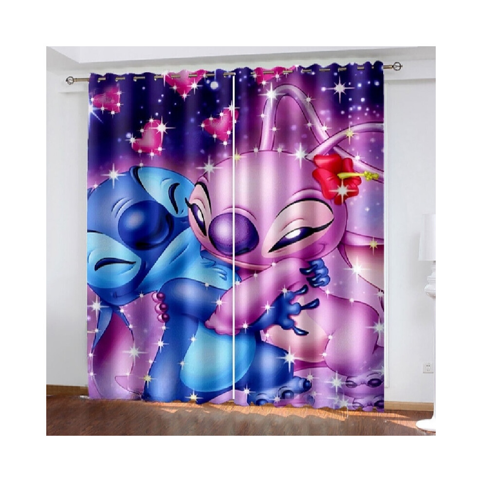 (Kiss, 59"(W)Ã65"(L)/150cm(W)Ã166cm(L)) 3d Lilo Stitch Cartoon Made Pair Thick Thermal Blackout Curtains Eyelet Ring Top