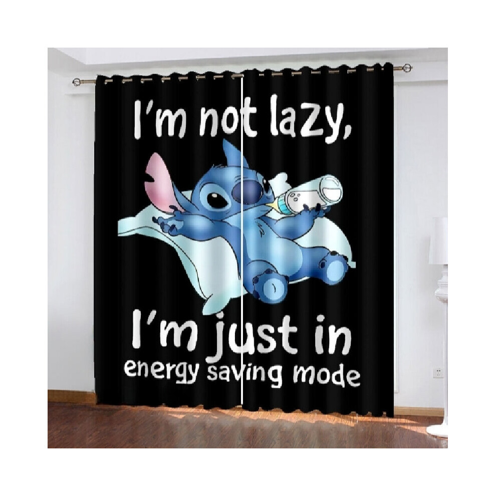 (Lazy, 59"(W)Ã65"(L)/150cm(W)Ã166cm(L)) Stitch Lilo 3d Cartoon Made Pair Thick Thermal Blackout Curtains Ring Eyelet Top